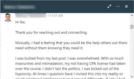 Prior to working with Ike, I had dealt with a lot of the same frustrations most CPA’s deal with. I’d put in a lot of long hours at work without realizing my billing rate. I’d spend a lot of time being a historian, recording the past, and playing “catch up” to tax deadlines, without spending the required time engaged in proactive planning for my clients. I’d struggle with how to attract and service my ideal client. For years, I had entertained thoughts of being more proactive with my clients, engaging in value-based billing and adopting a more effective top and bottom line growth model, but never quite knew how to get there. In just a few months of working with Ike, I’ve gone from thought to action, from dreaming to believing, and from hoping to actualizing and seeing results. With just the first couple of my clients Ike and I have worked on adding value to, I can easily see how my firm will add $100,000 to $300,000 in revenues and profits this year alone. Ike has truly opened my eyes to the “acres of diamonds” within my firm. If you’re considering working with Ike and he has the time in his busy schedule to work with you, jump at the opportunity. You’ll be glad you did. I was.